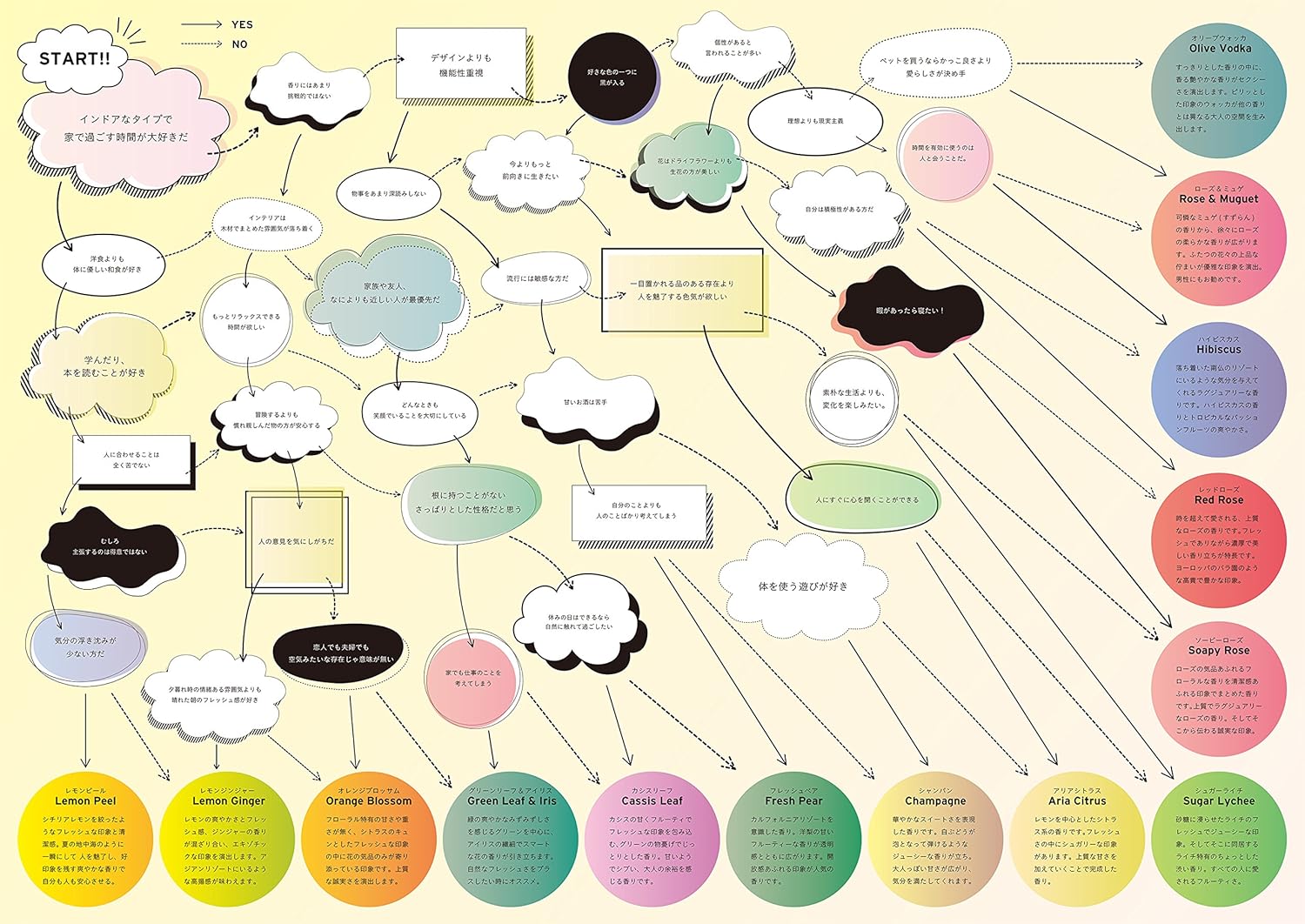 Amazonの商品ページから、16種類の香りを選ぶことができて、チャート式で自分の好みに合った香りが見つかる画像も見られますよ。