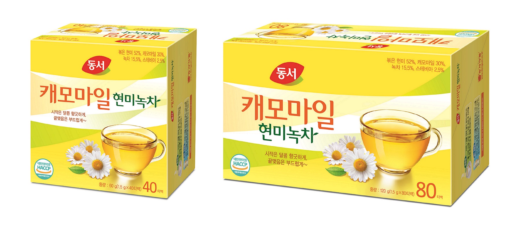 신제품 동서 캐모마일 현미녹차는 전국 할인점에서 티백 80개(120g) 기준 9200원, 티백 40개(120g) 기준 4900원에 판매 예정이다.