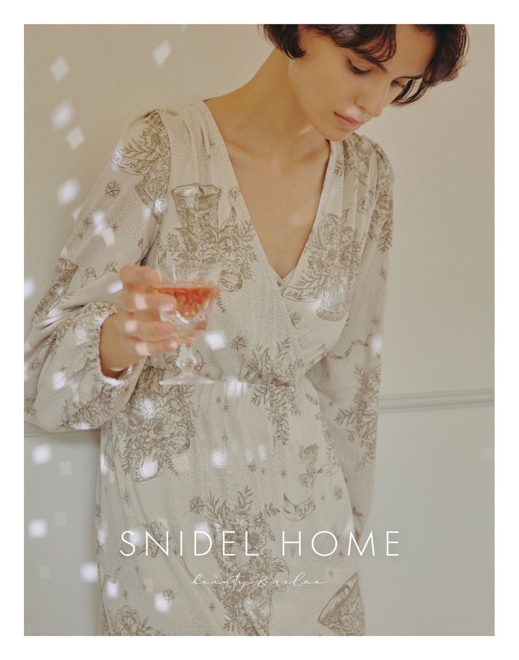 2005年にスタートしたレディースブランド「SNIDEL(スナイデル)」から、おうちの中のファッション・ライフスタイルを提案するブランドが誕生しました。BEAUTY HOME DRESSをコンセプトに、美しさを追求。美しく見えるフォルムやデザインはもちろんのこと、着ているだけで美しくなるような美容成分を生地に施しました。