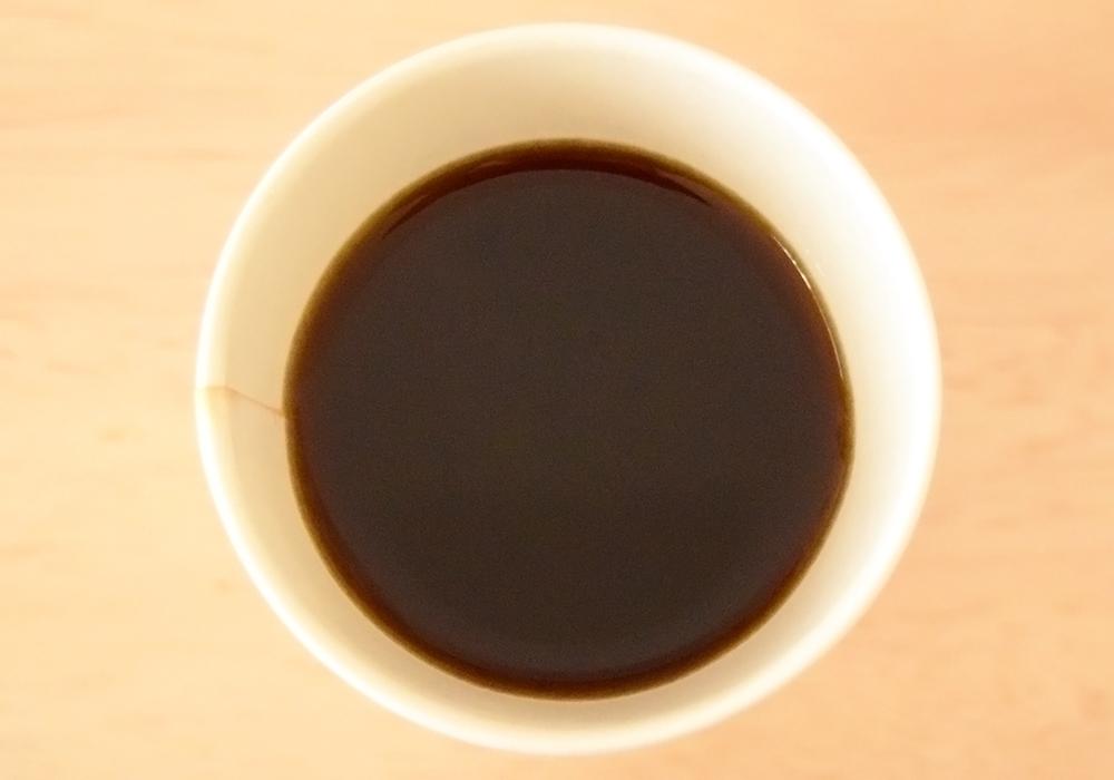 公式サイトによると、1杯あたり6kcal・たんぱく質0.3g・脂質0.3g・炭水化物1.0g・食塩相当量0gです。コーヒーからは少々酸味のあるフルーティーな香りがします。なお、筆者が利用した店舗では店員さんが店内マシンでコーヒーを抽出。受け取り当初から少しだけ泡立ちが出ている状態です。